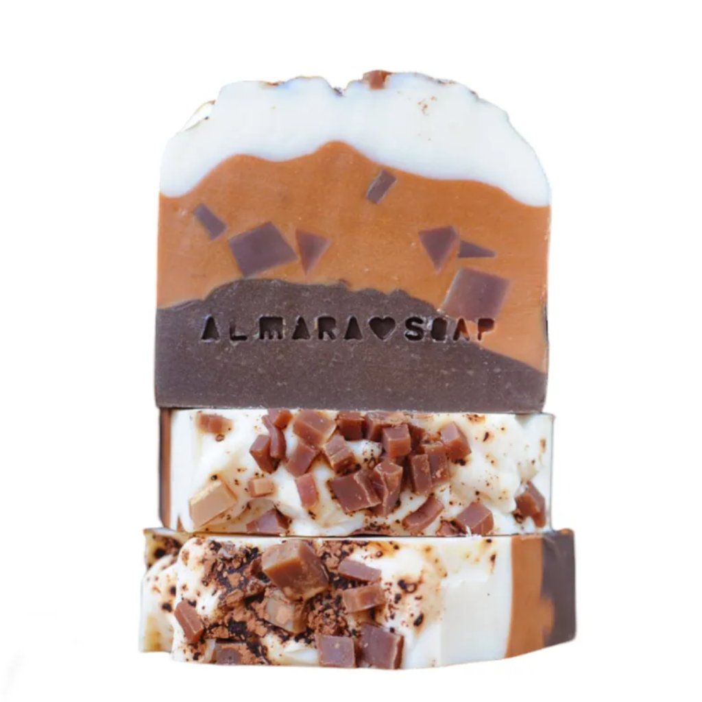 Dizajnové ručne vyrobené mydlo s vôňou čokoládových sušienok s tónmi karamelu.