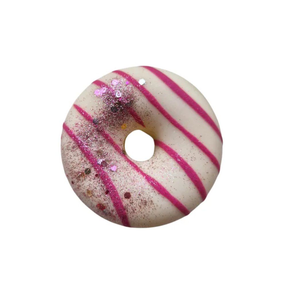 Žltý základ doplnený bielym a ružovým zdobením a biologicky odbúrateľnými glitrami vytvára hravý a moderný vzhľad. Mydlo nie je len praktické, ale aj štýlové – skvele poslúži ako darček alebo dizajnový doplnok do kúpeľne.