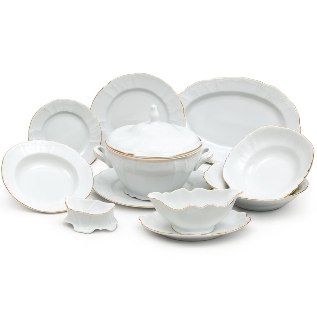 Porcelánová jedálenská súprava biela zlatý okraj BERNADOTTE.