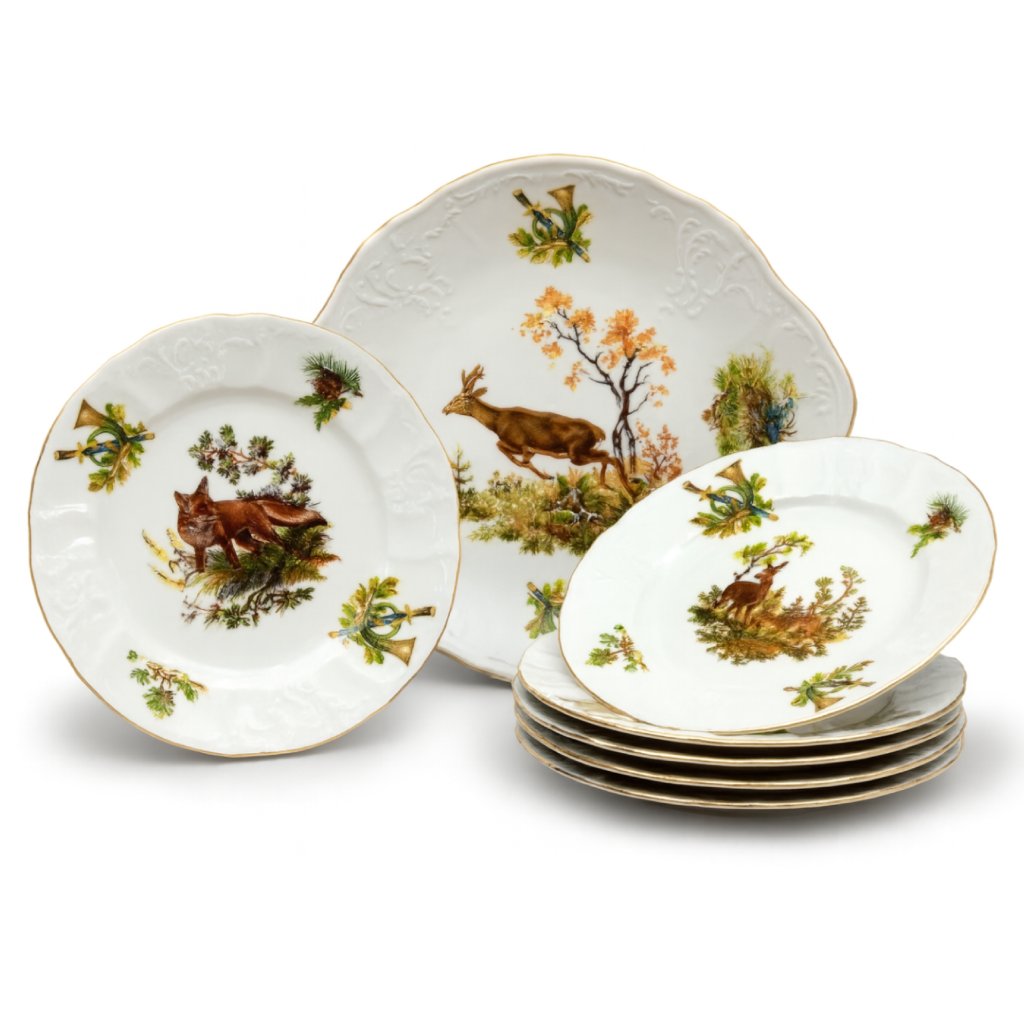 Porcelánová koláčová súprava poľovnícka BERNADOTTE.