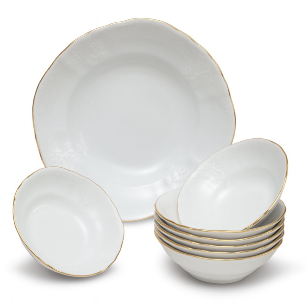 Thun 1794 BERNADOTTE kompótová súprava biela zlatý okraj 7 dielna