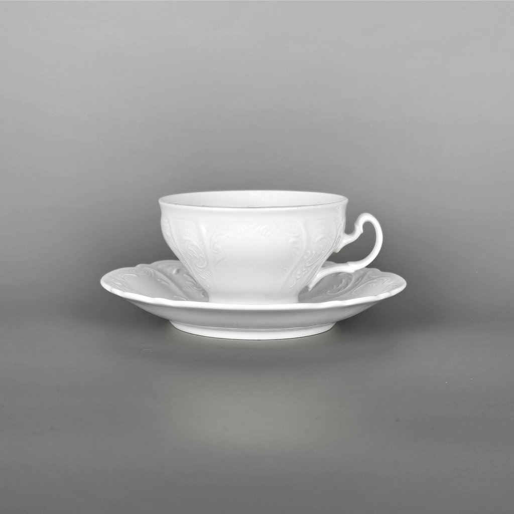 Porcelánová šálka na čaj, cappuccino s podšálkou biela BERNADOTTE.