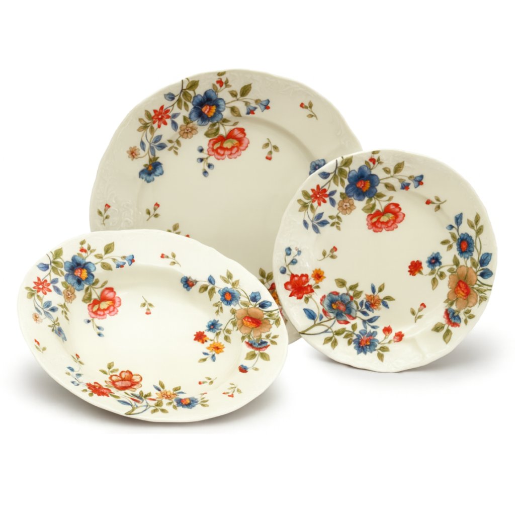 Thun 1794 BERNADOTTE tanierová súprava ivory farebné kvety 18 dielna