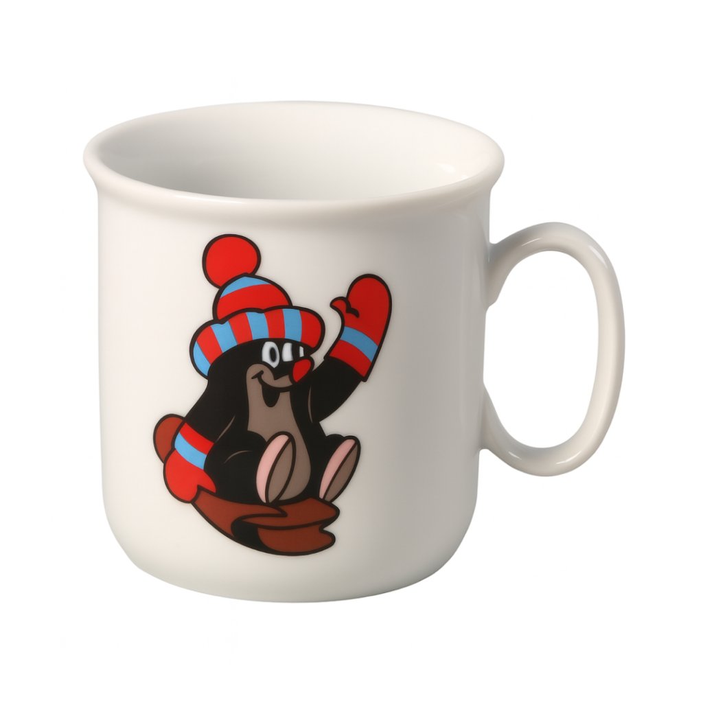 Porcelánový hrnček detský biely KRTKO a čiapka.