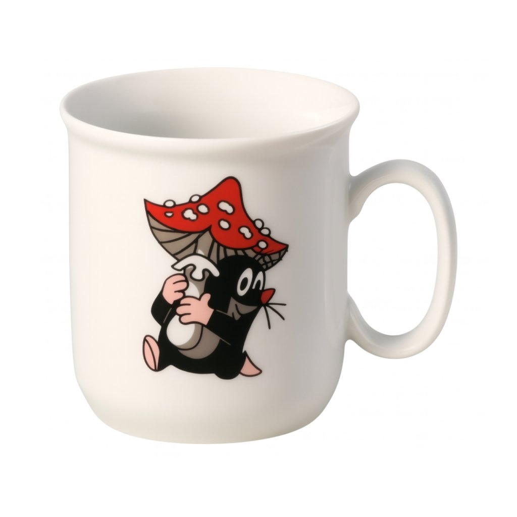 Porcelánový hrnček detský biely KRTKO a muchotrávka.
