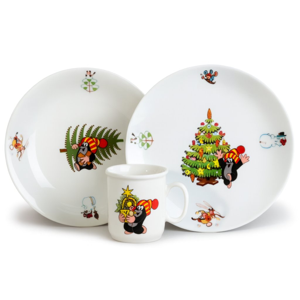 Porcelánová tanierová súprava biela KRTKO a vianoce.