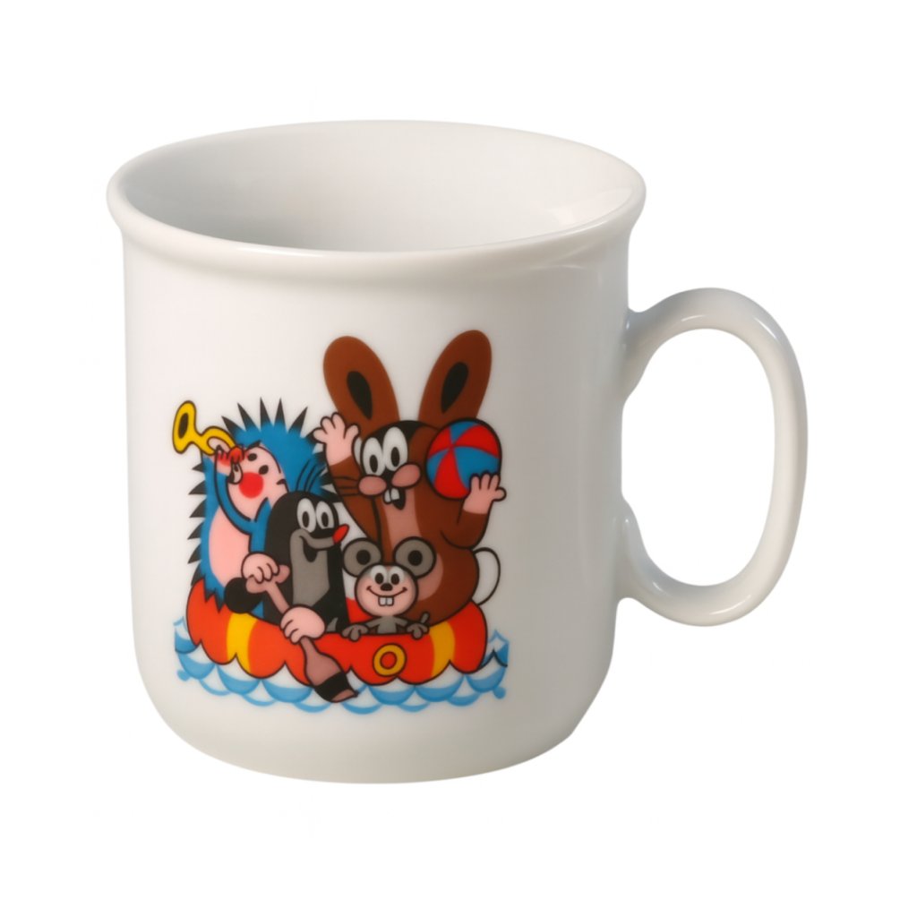 Porcelánový hrnček detský biely KRTKO a zvieratká na člne.