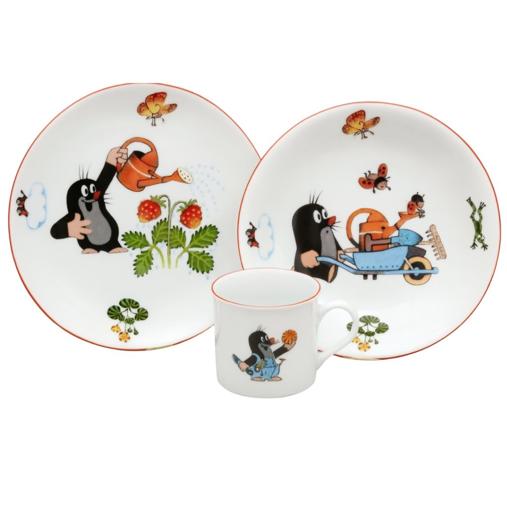 Porcelánová tanierová súprava biela KRTKO s jahôdkami.