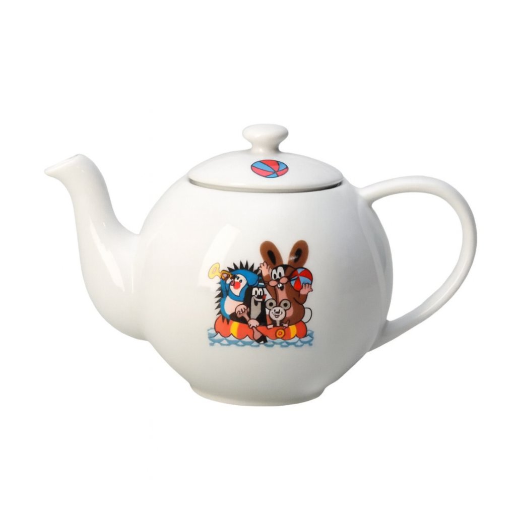 Porcelánová kanvica na čaj biela KRTKO zvieratká a čln.