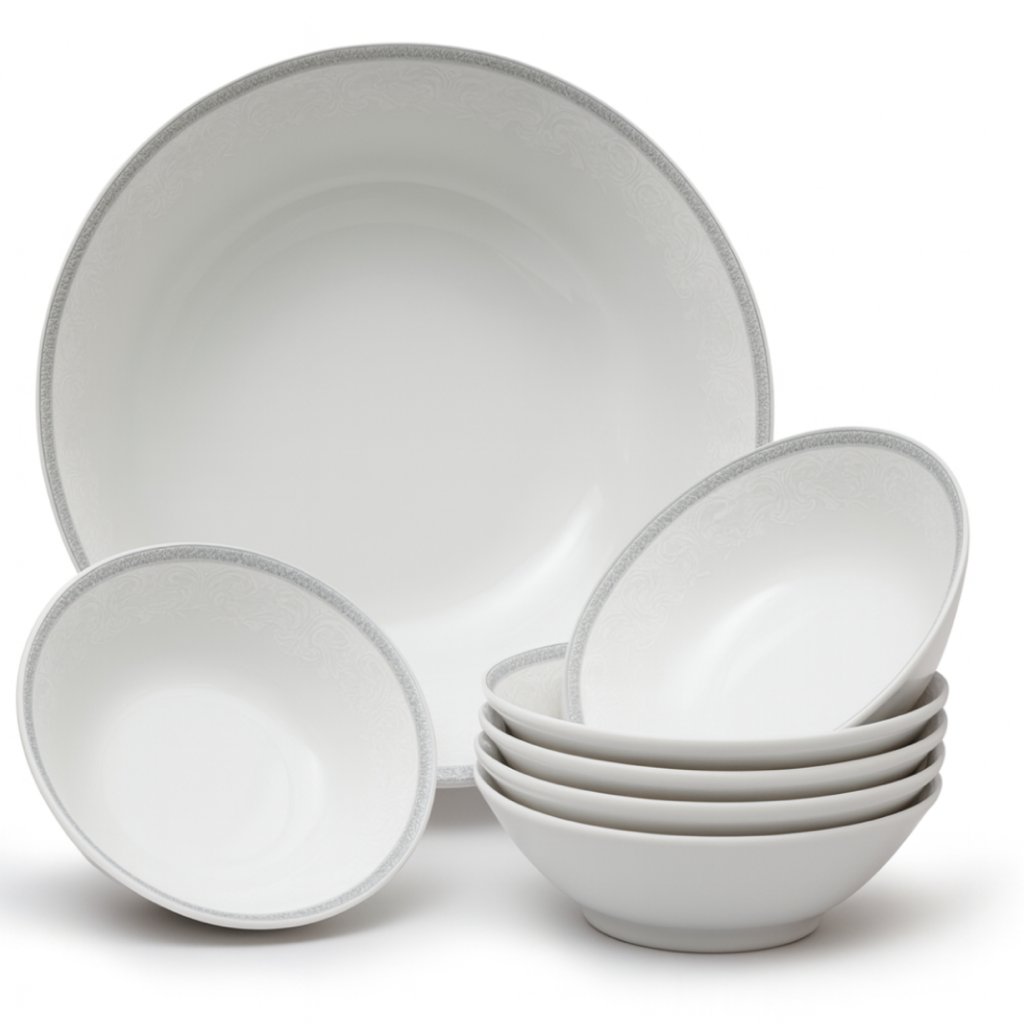 Porcelánová kompótová súprava sivá čipka OPAL.