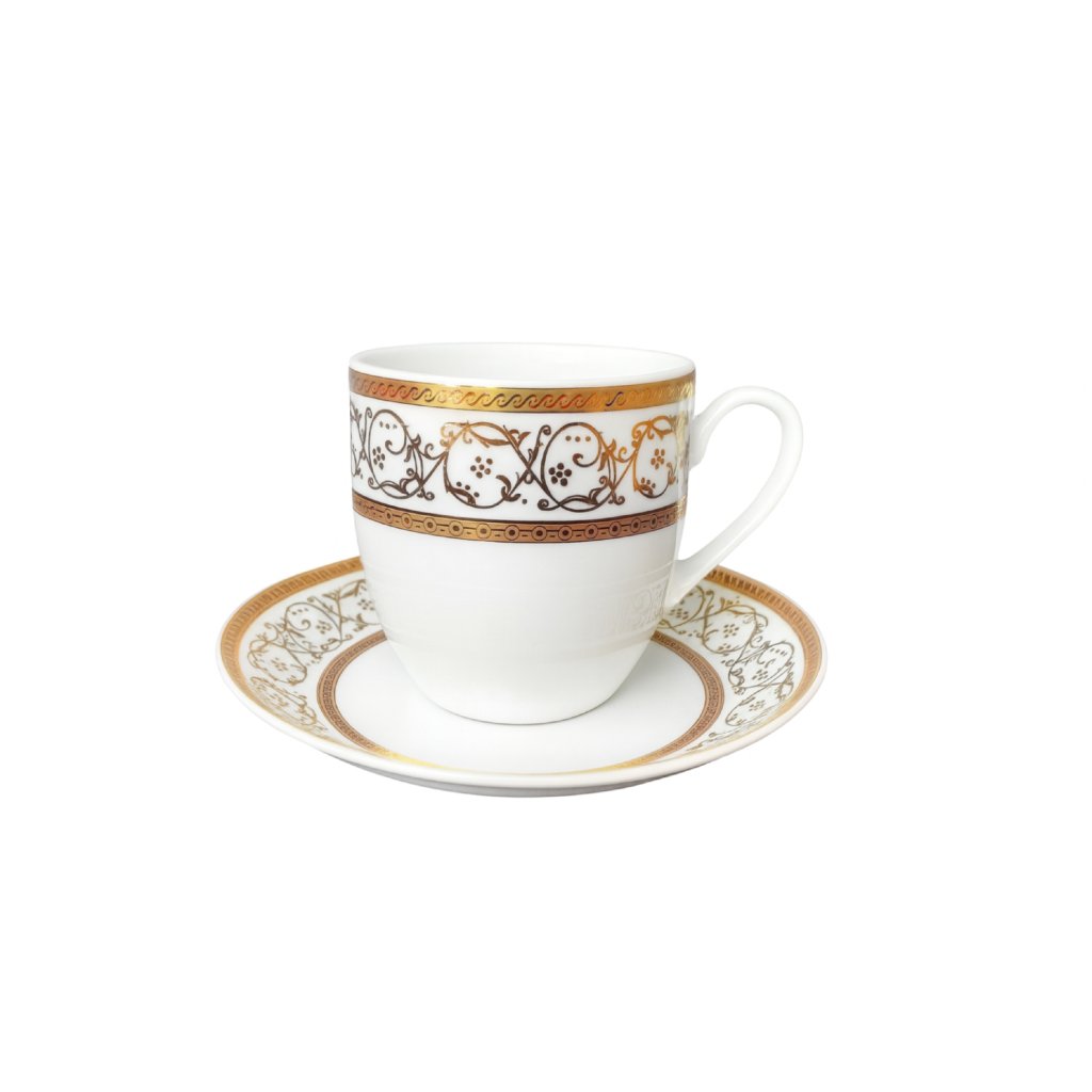 Porcelánová šálka lungo s podšálkou biela SAPHYR so zlatým dekorom.