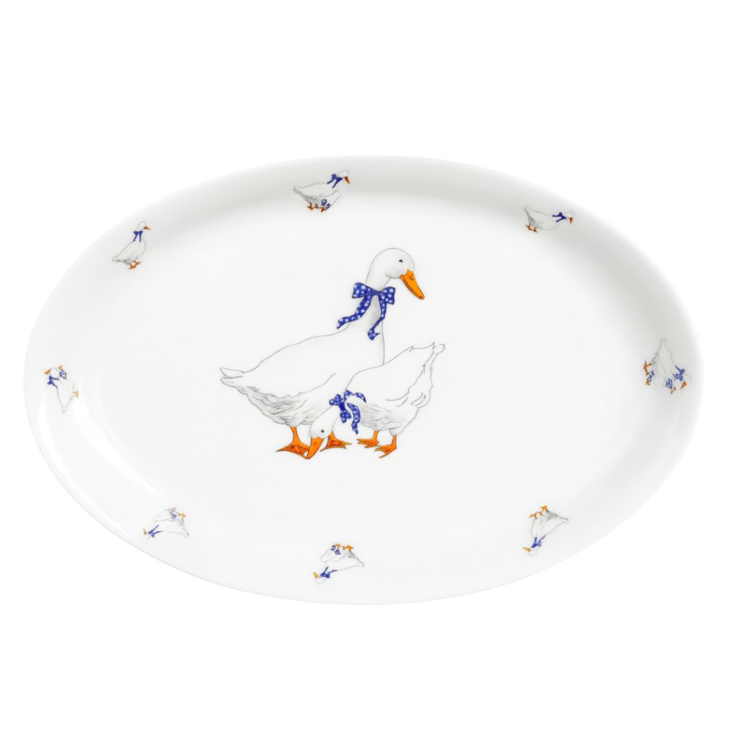 Porcelánový servírovací ovál biely s motívom HUSY.
