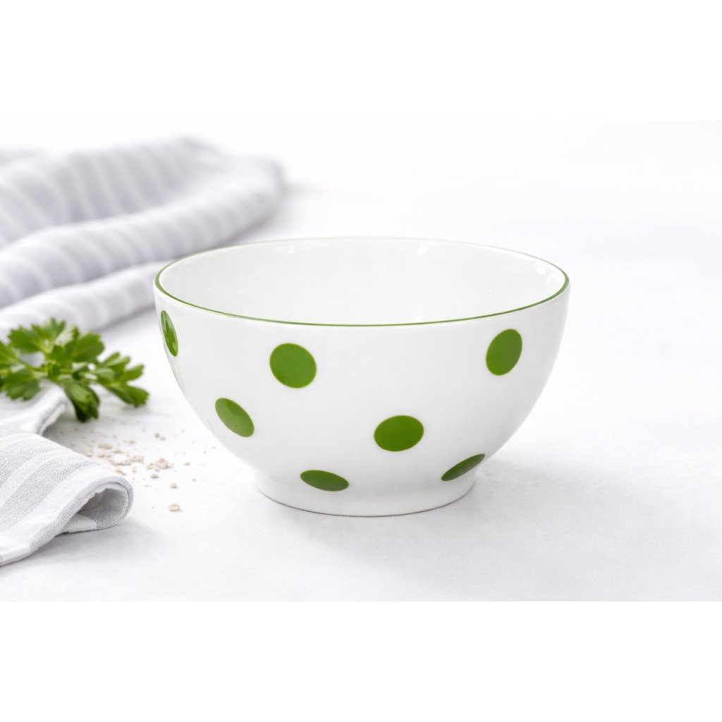 Porcelánová miska biela VITAL zelená bodka.
