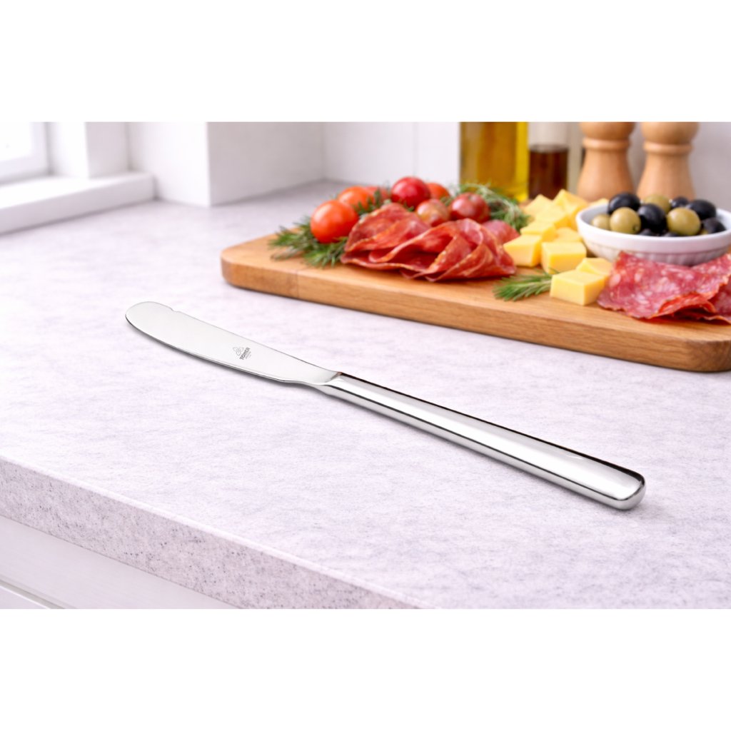 Nôž na maslo PROGRES je vyrobený z kvalitnej nerezovej ocele 18/10 a mechanicky leštený do vysokého lesku, čo zaisťuje elegantný vzhľad aj dlhú životnosť.