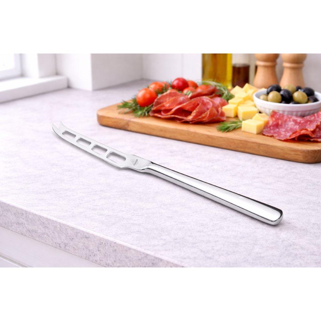 Robustné prevedenie, optimálny tvar čepele a možnosť umývania v umývačke z neho robí ideálny nástroj pre pohodlné krájanie a servírovanie všetkých druhov syrov.
